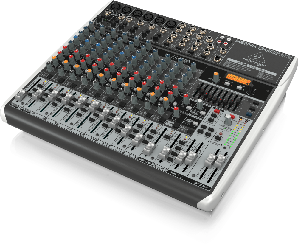 مكسر ممتاز 18 مدخل 3/2 ناقل مع مضخمات وضواغط ميكروفون XENYX ومعالج Klark Teknik Multi-FX وخيار لاسلكي وواجهة USB / صوت